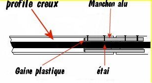 assurant la jonction des profilés, (avec 4 vis par manchon) et pour