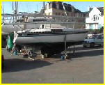 j'installe Morgan équipée, de ses béquilles, sur la cale de carènage